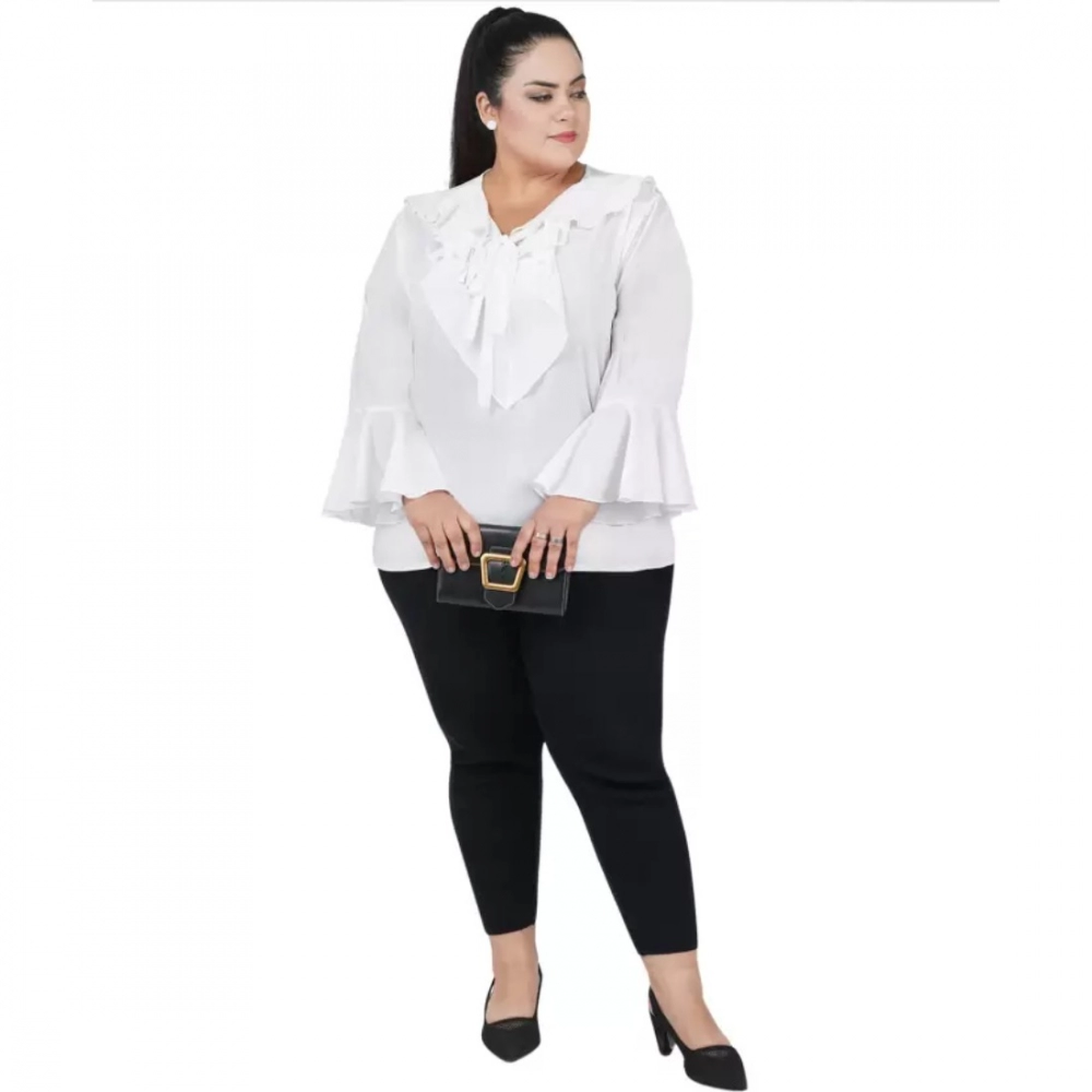 Generic Women’s Casual Bell Sleeve Solid White Top