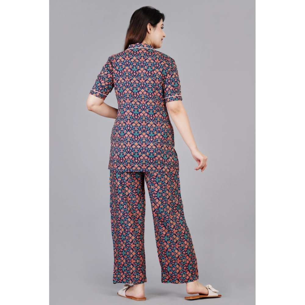 Women’s Casual Half Sleeve Printed Viscose Rayon Shirt With Pyjama Pant Night Suit Set