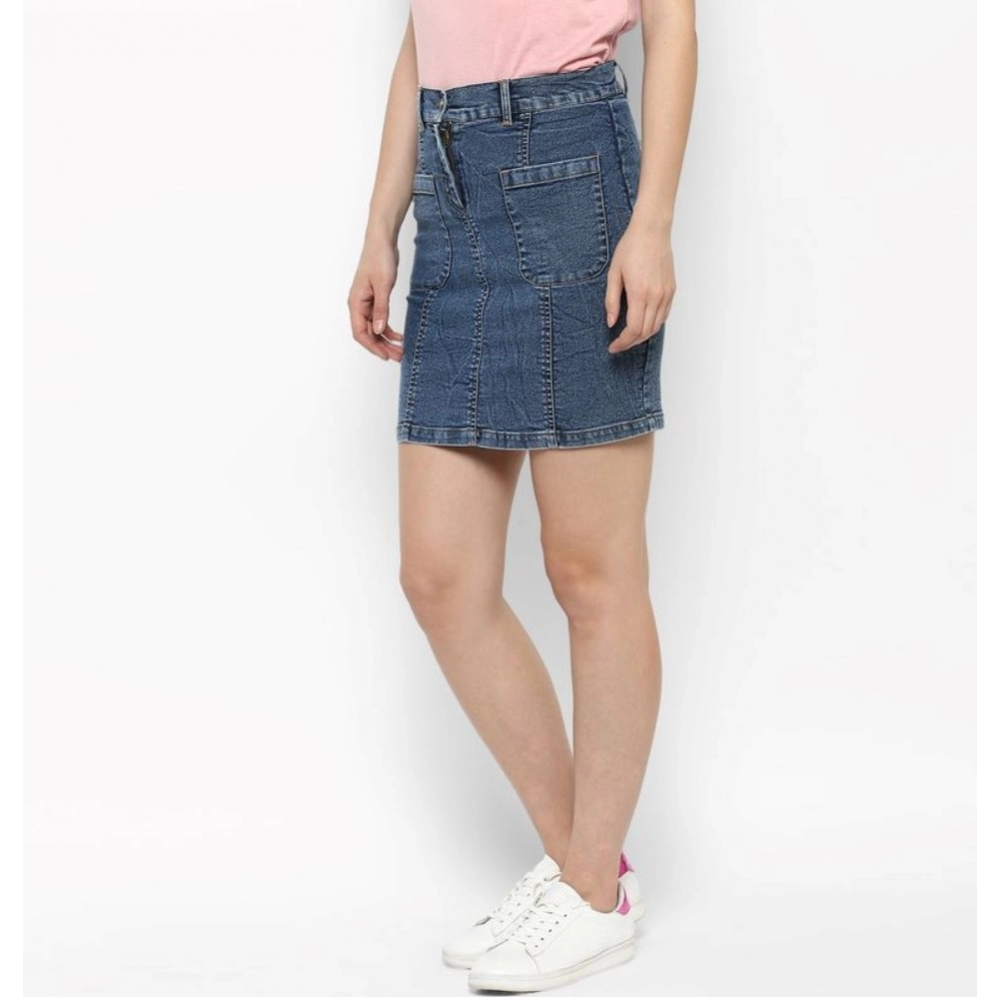 Women’s Denim Front Pocket Buttoned Skirt