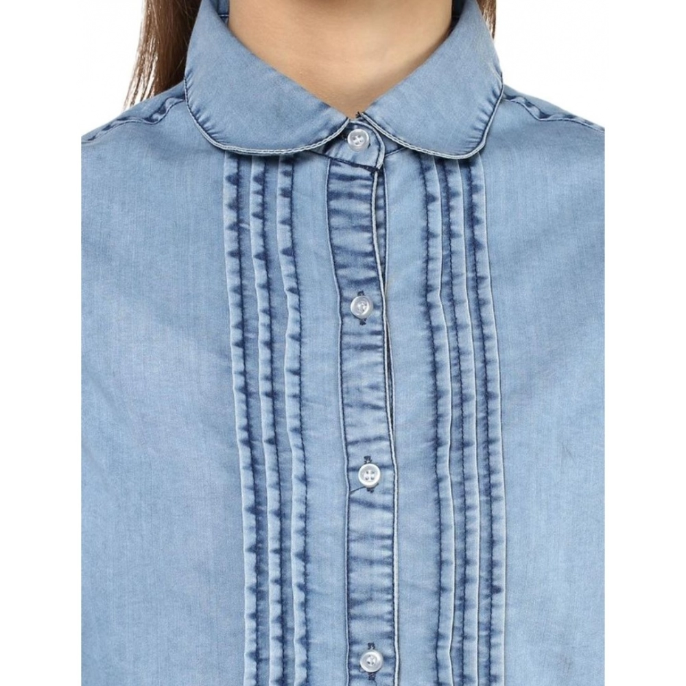 Women’s Denim Solid 3-4th Sleeves Standard Length Shirt