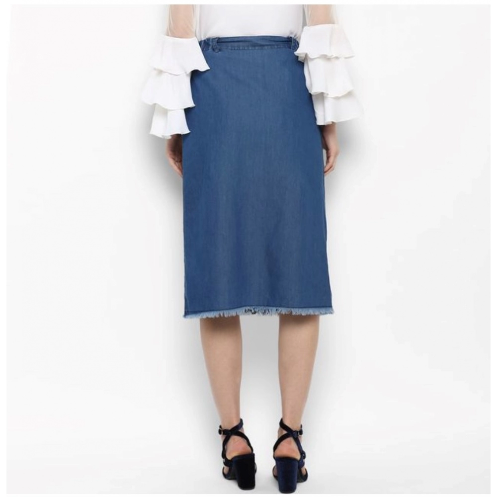 Generic Women’s Denim Washed Buttoned Skirt (Blue)