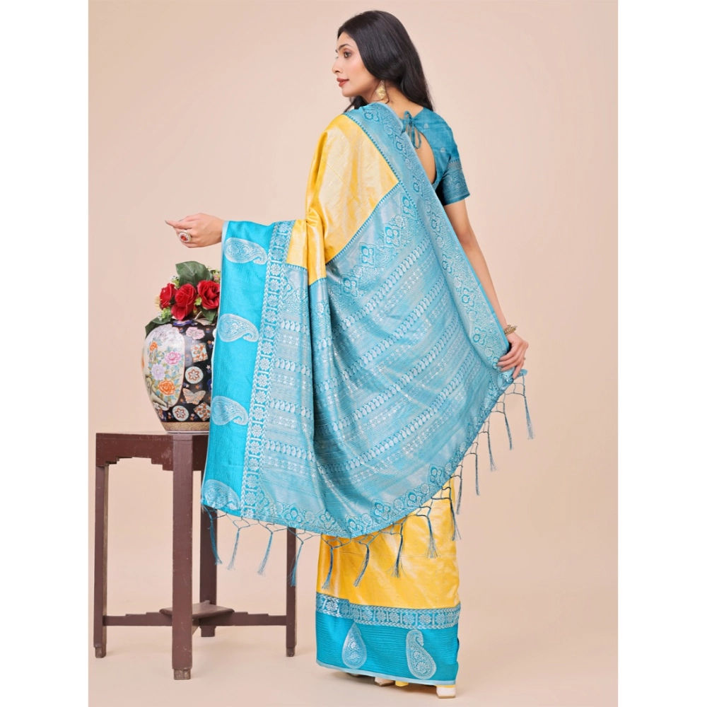 Women’s Lichi Silk Printed Saree With Unstitched Blouse 5.5Mtr