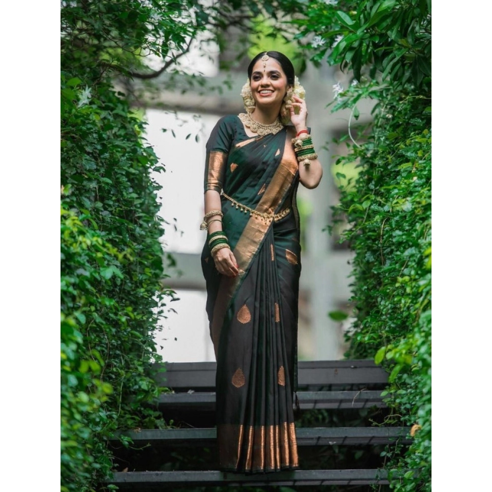 Generic Women’s Litchi silk Printed Saree With Unstitched Blouse (Green)
