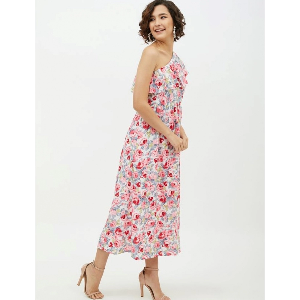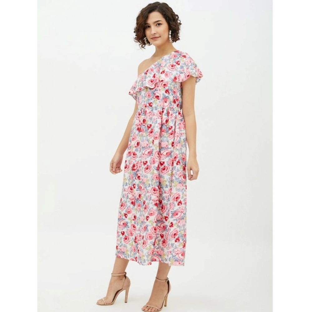 Generic Women’s Polyester Floral One Shoulder Calf-length Dress (Multicolor)