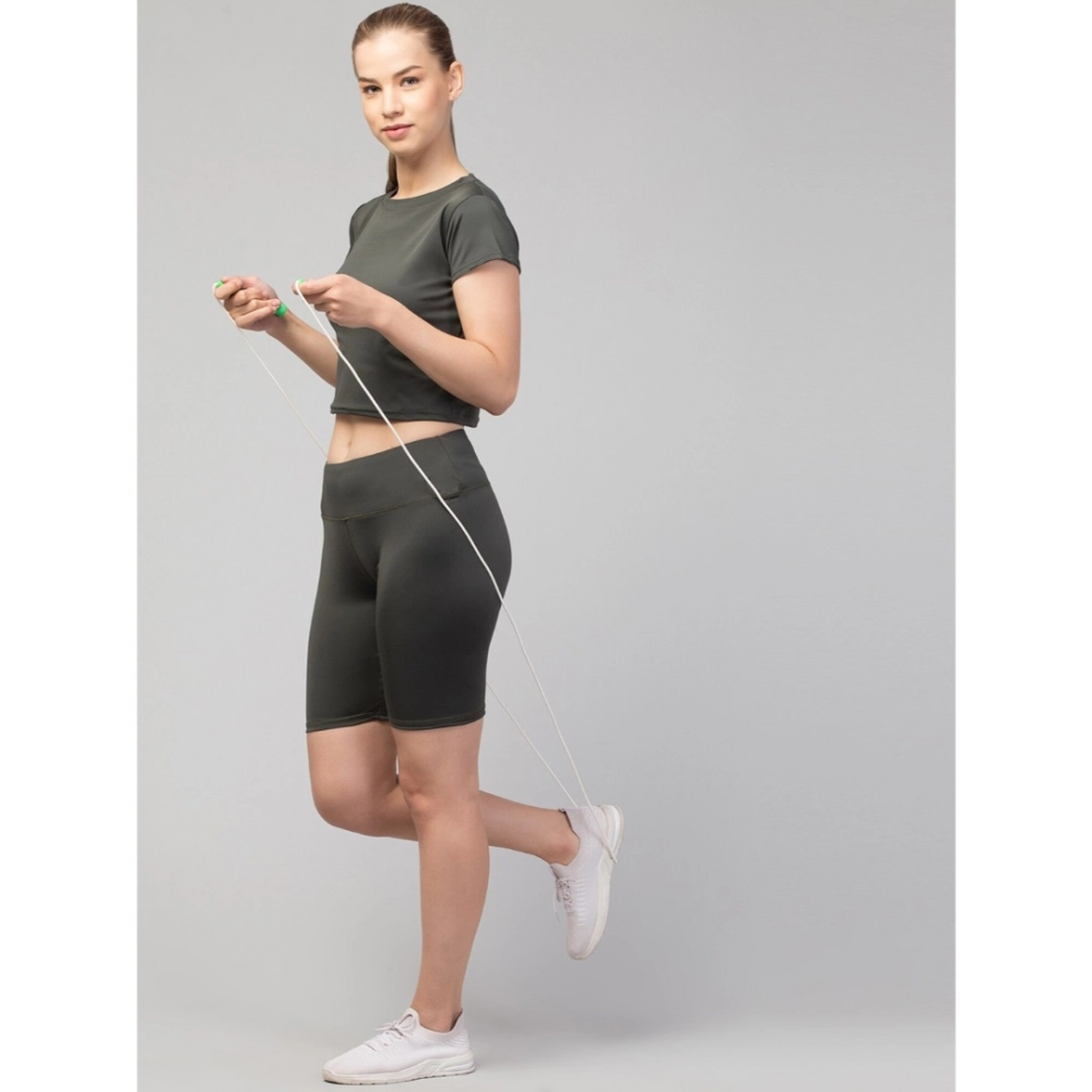Generic Women’s Polyester Solid Above Knee High-Rise Shorts (Green)