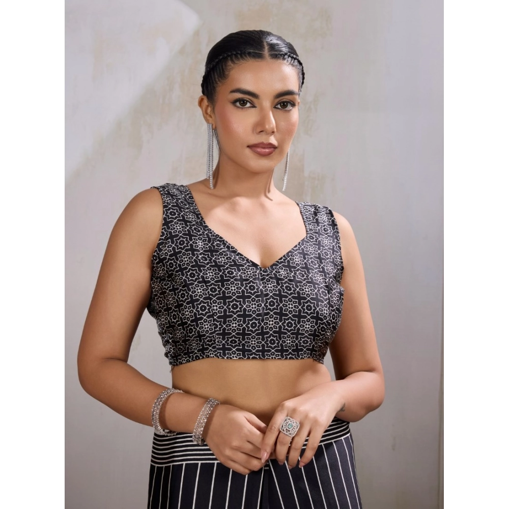 Women’s Satin Crepe Printed Saree With Unstitched Blouse 5.5Mtr