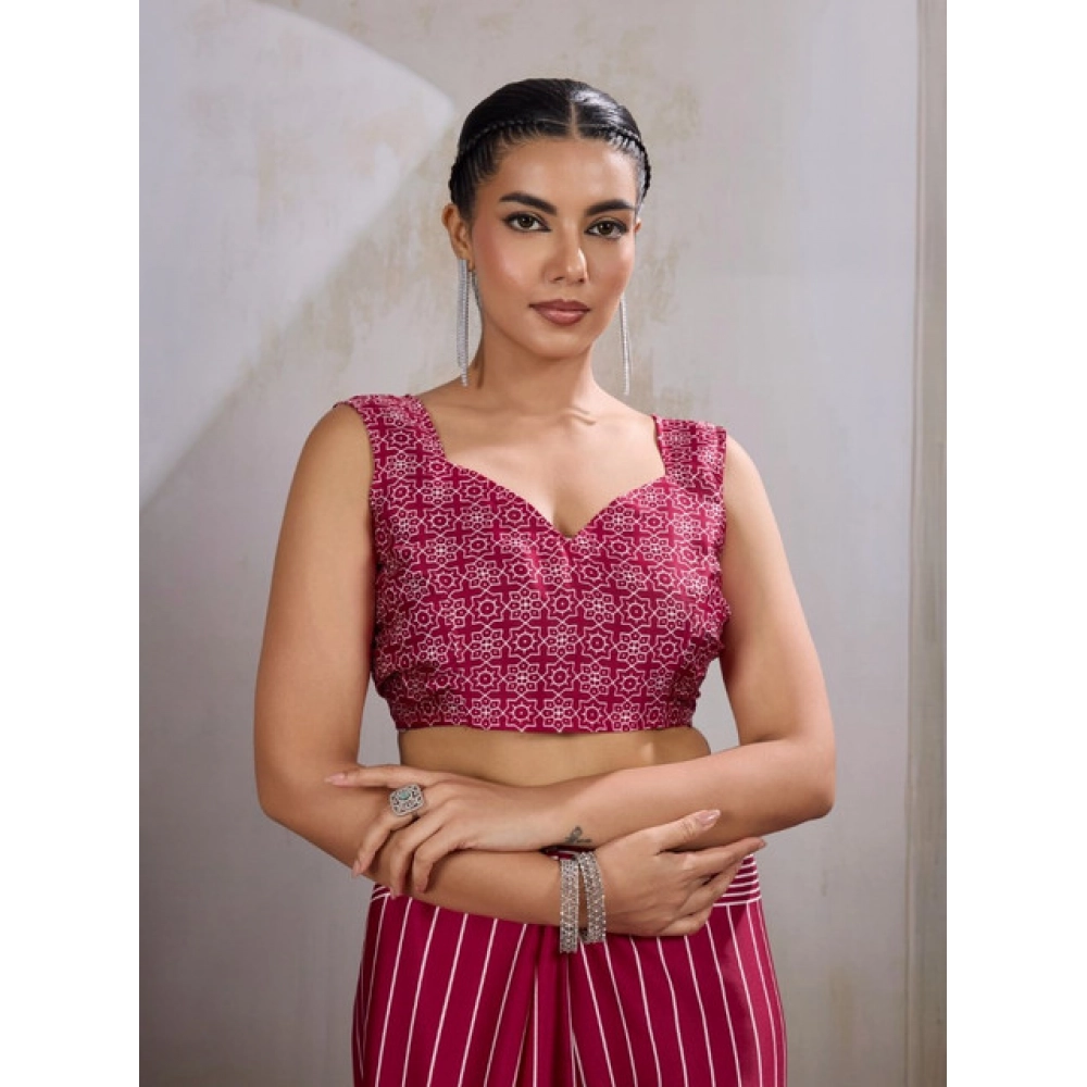 Generic Women’s Satin Crepe Printed Saree With Unstitched Blouse 5.5Mtr (Maroon)