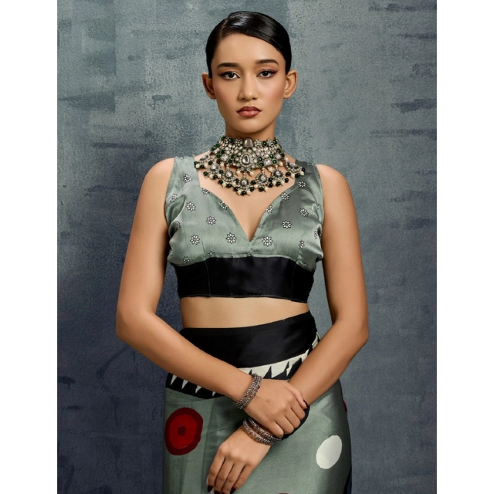 Women’s Satin Crepe Printed Saree With Unstitched Blouse 5.5Mtr