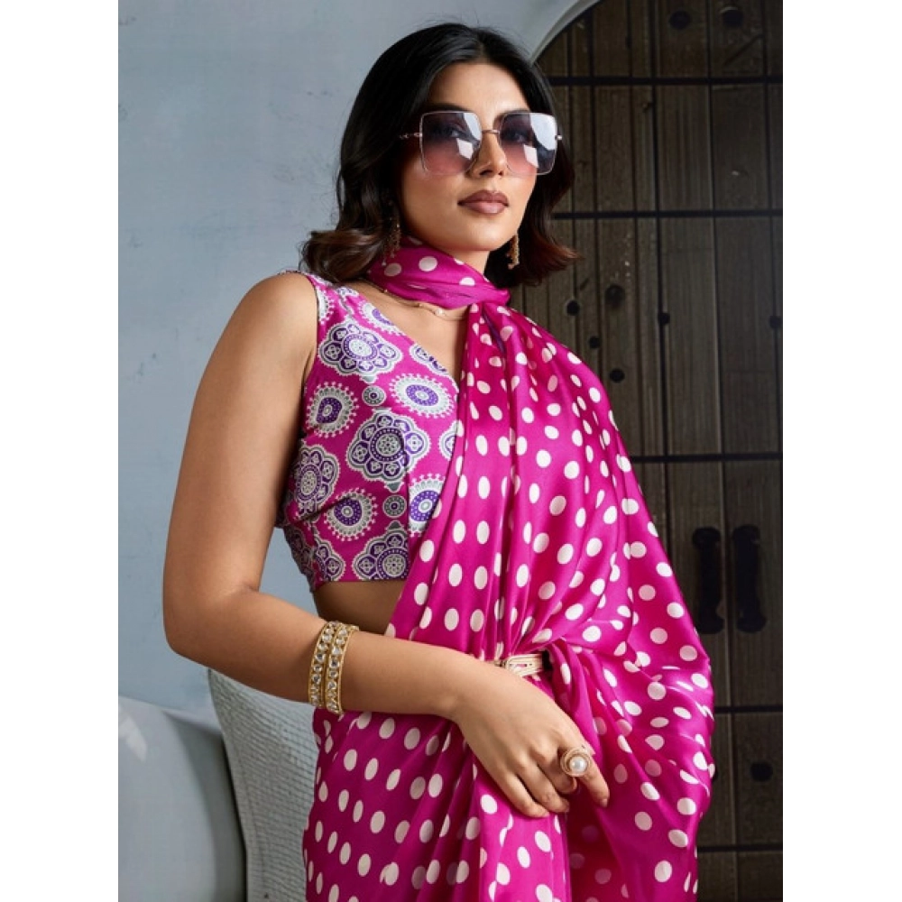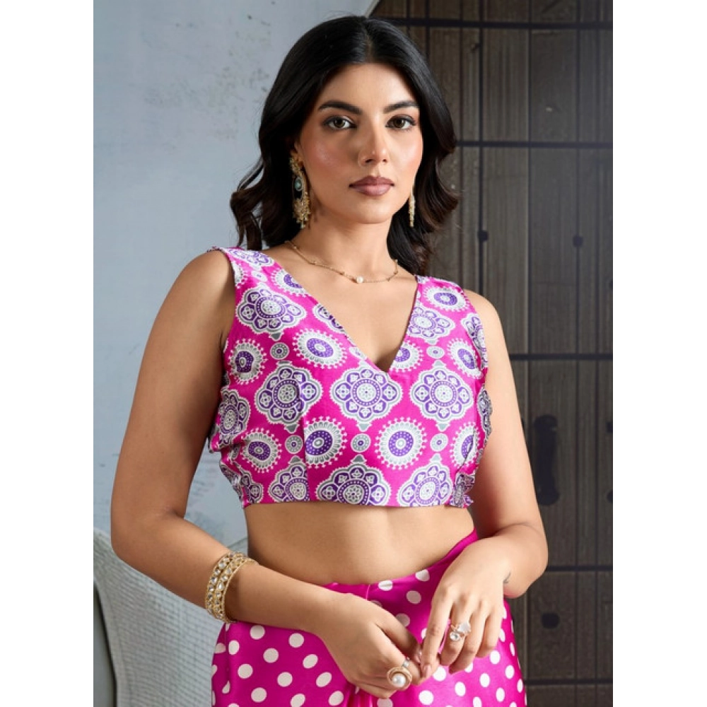 Generic Women’s Satin Crepe Printed Saree With Unstitched Blouse 5.5Mtr (Pink)