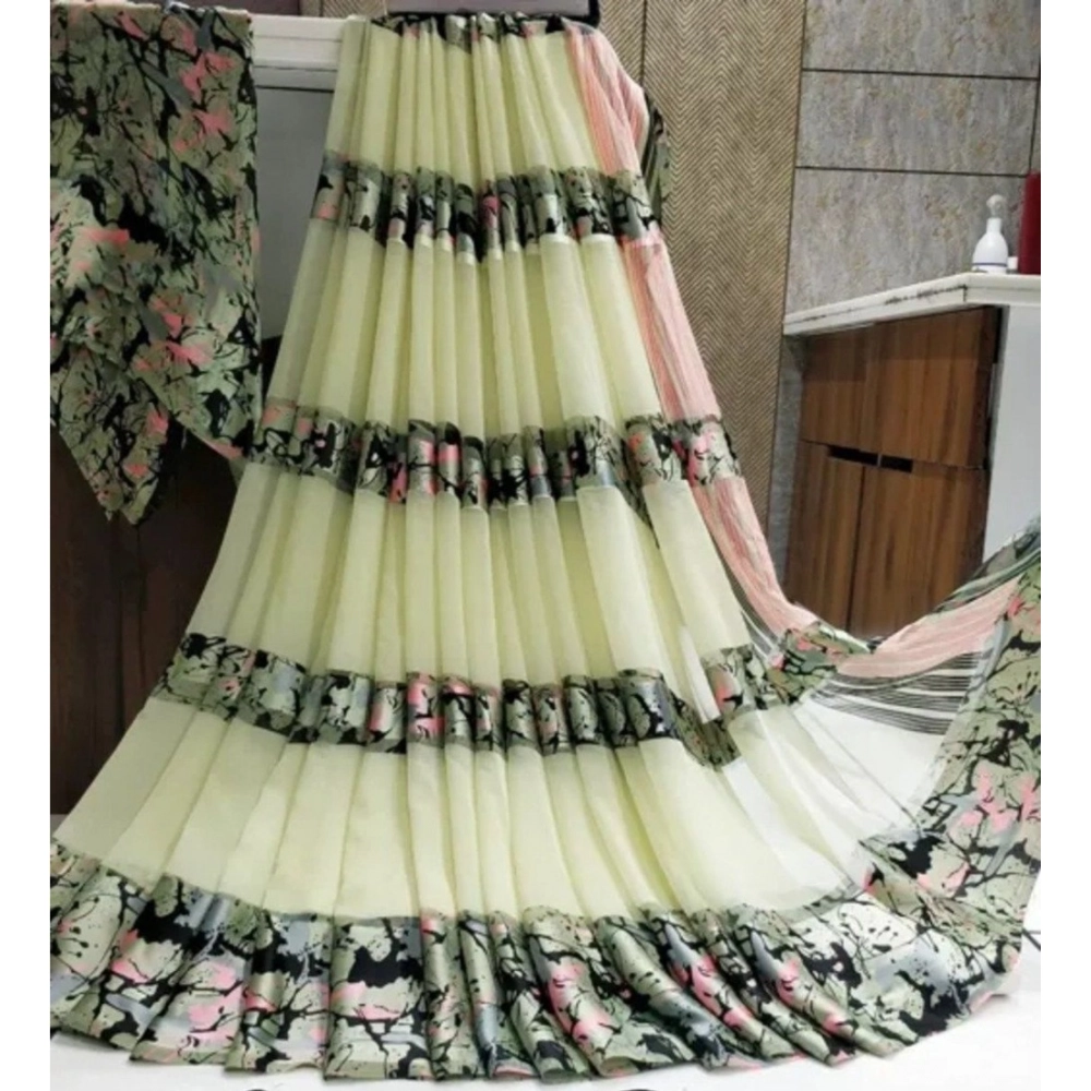 Women’s Satin Patta Printed Saree With Unstitched Blouse