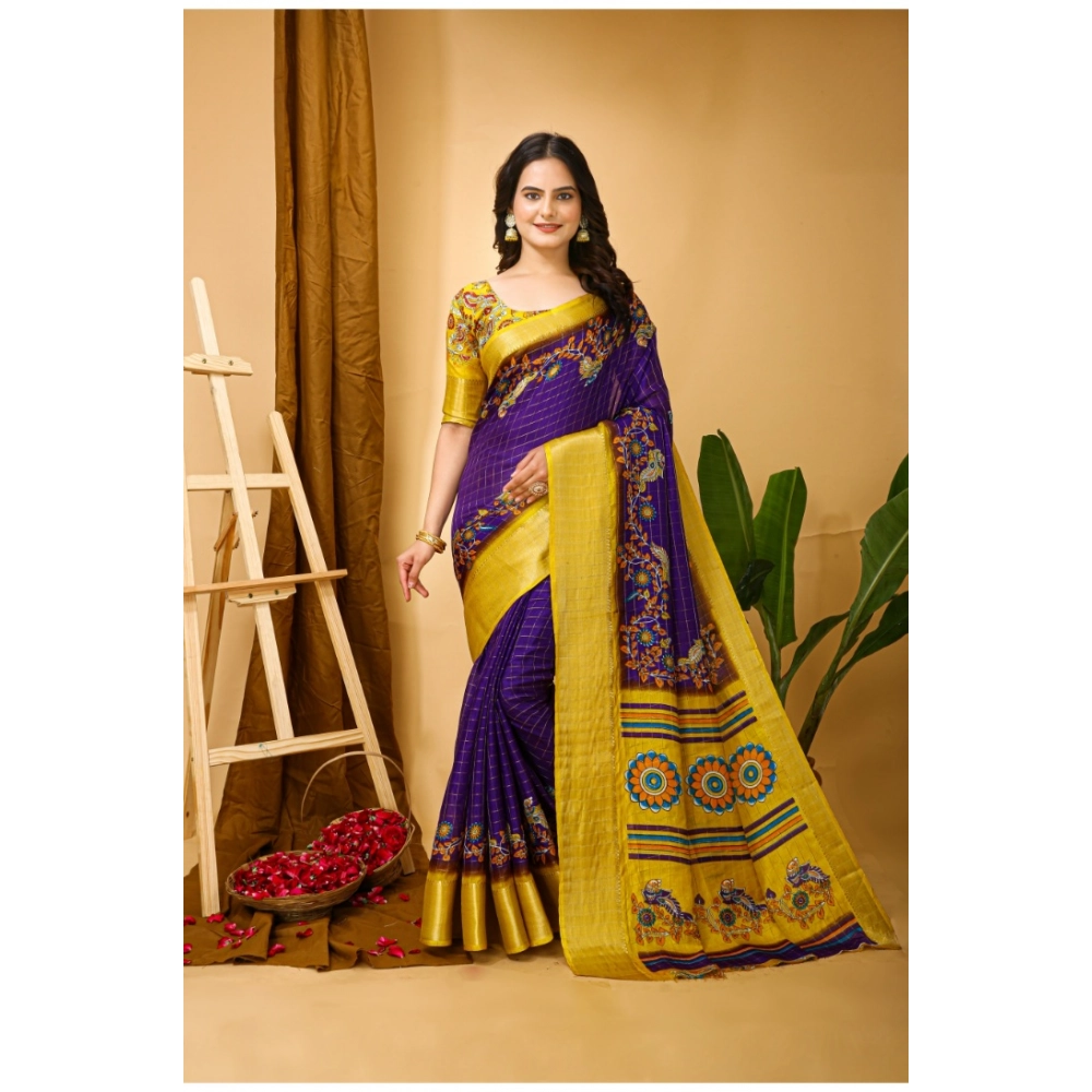 Women’s Soft Dola Cotton Kalamkari Printed Saree With Unstitched Blouse