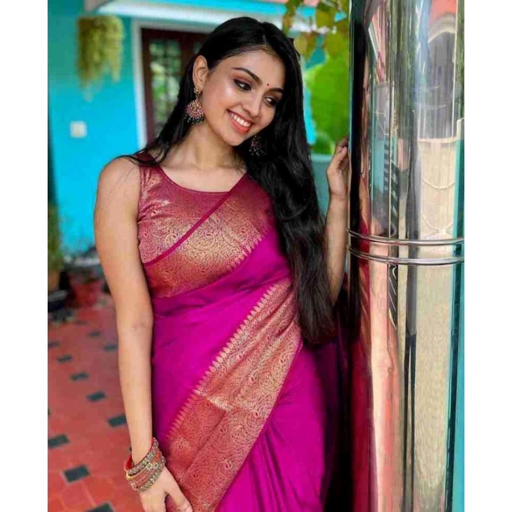 Women’s Soft Lichi Silk Solid Saree With Unstitched Blouse 5.5Mtr